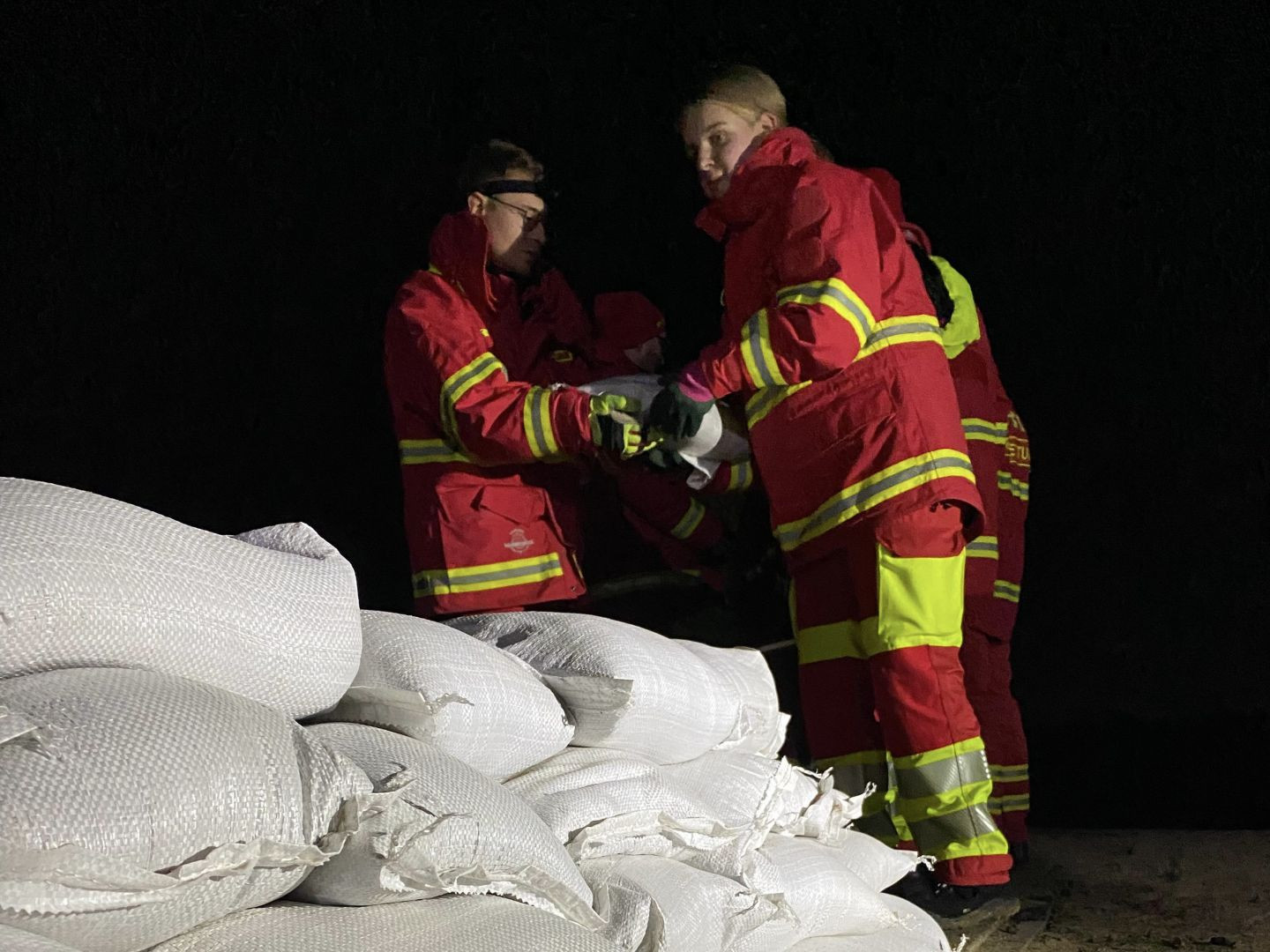 Nach einer kurzen theroretischen Wiederholung wurde praktisch geübt. Zunächst wurden ca. 100 Sandsäcke abgefüllt und palettiert. Diese wurden anschließend verlegt. Zum Abschluss wurde die Aufladung mittels Paletten und Planen geübt.